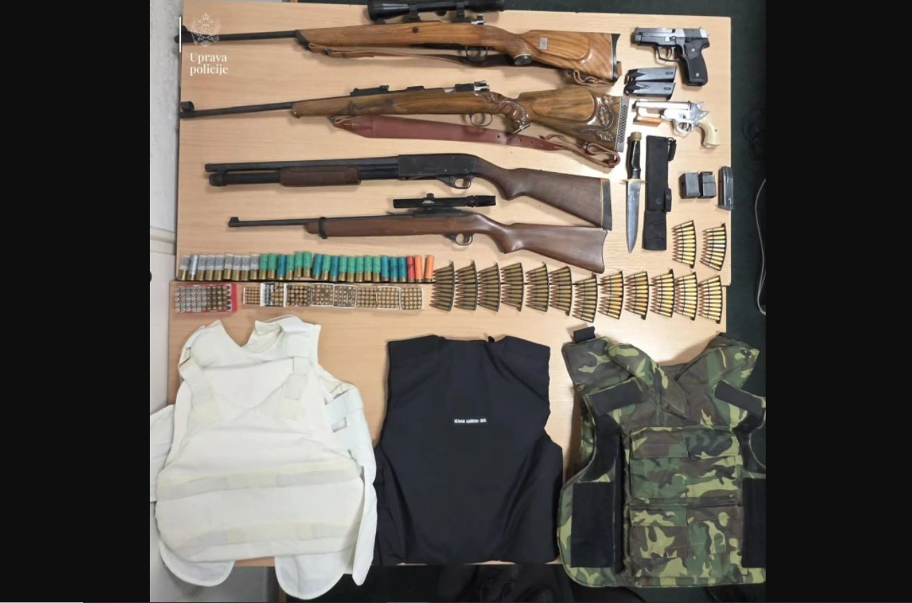 Ponađeni su lovački karabin marke „Mauser“ sa optičkim nišanom, puška marke „Brno“ sa optičkim nišanom marke „Busnell“, puška sačmarica nepoznate marke, pištolj nepoznate marke i lovački karabin marke „M-48“, u ilegalnom posjedu.