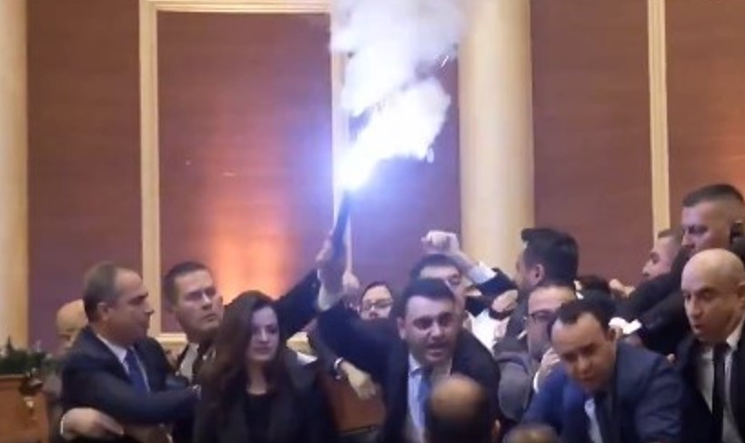 Inside the Albanian Parliament, opposition MPs ignited flares, physically blocked… pic.twitter.com/OQvVXgGP1d