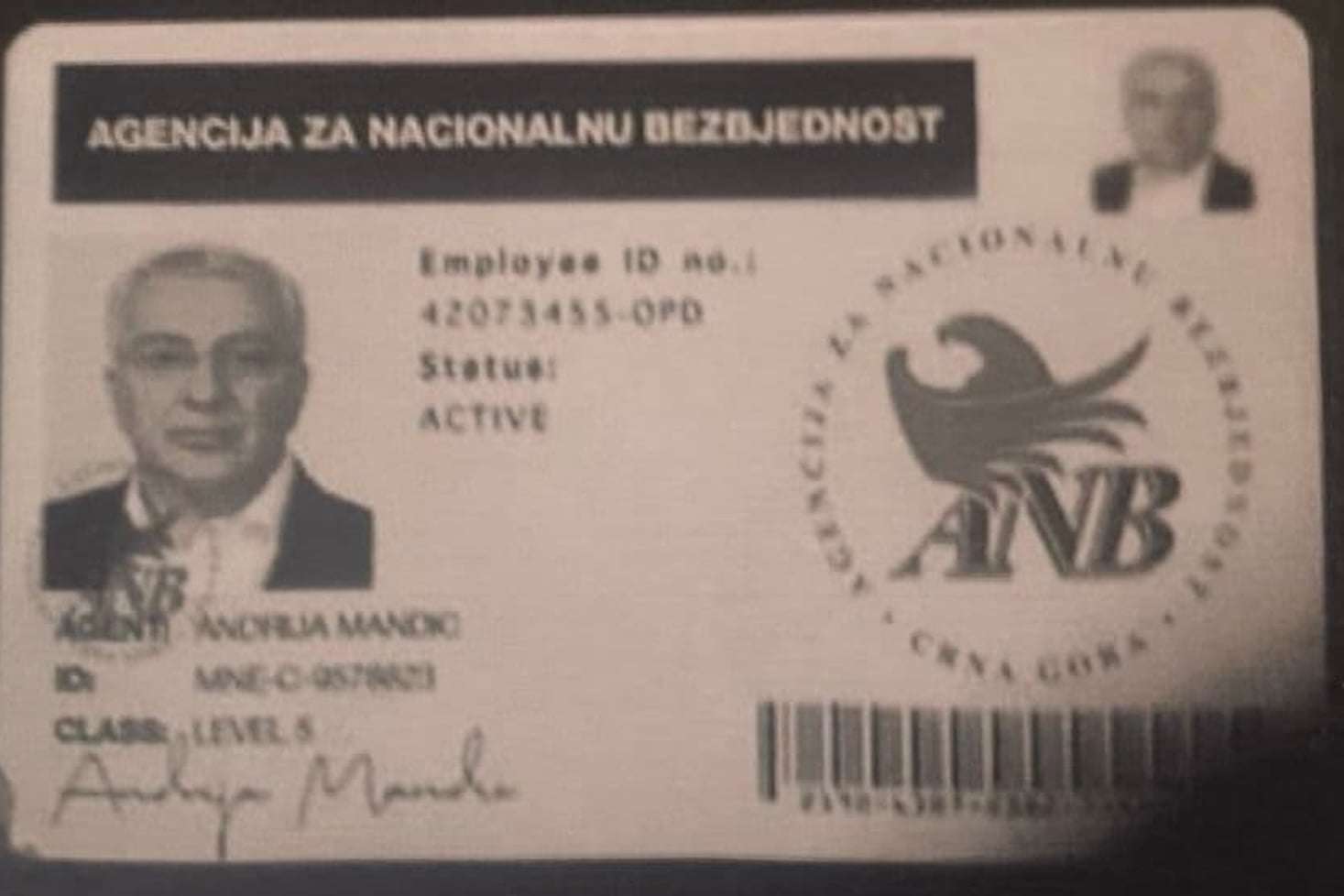 Fotografija navodne legitimacije ANB na ime Andrije Mandića na kriptovanim komunikacijama